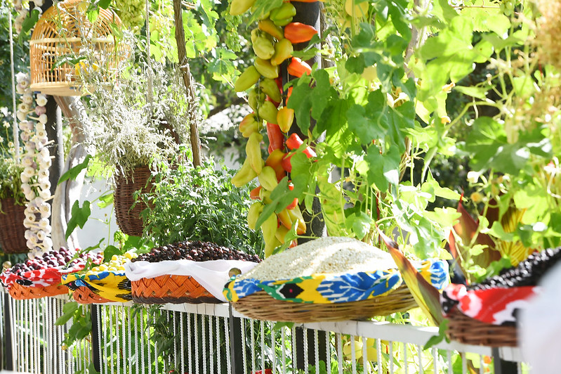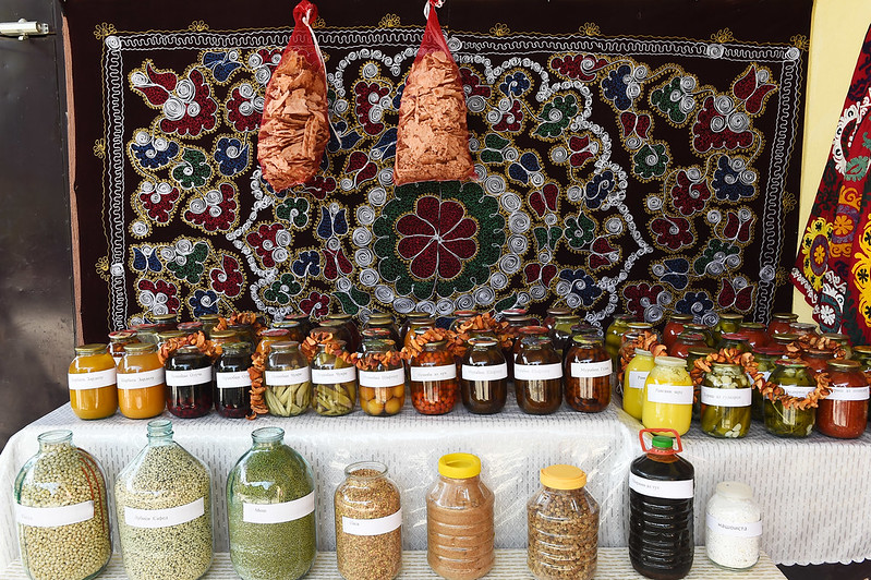 На выставке были представлены 5 видов меда, фрукты и овощи, сухофрукты, соки и варенья, крупы и продукция производства заводов и промышленных предприятий района.