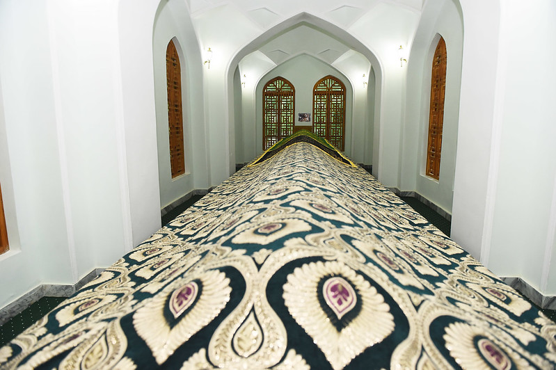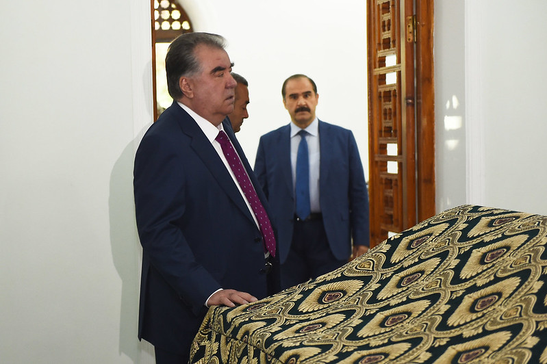 В самом начале поездки Эмомали Рахмон посетил усыпальницу Хазрата Султона Увайса Карани и помолился за стабильность и развитие Таджикистана.
