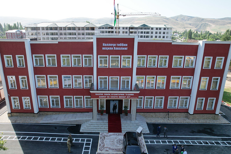 Потом Эмомали Рахмон принял участие в открытии в Ховалингском районе частного медицинского колледжа.