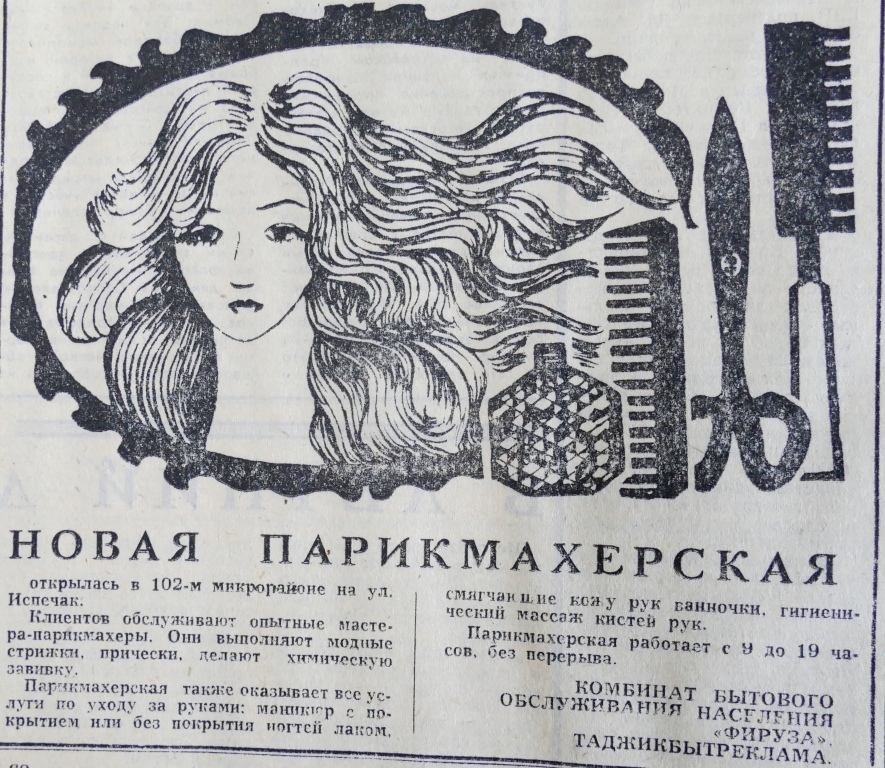И все же была в Душанбе очень популярная парикмахерская «Чародейка» под стать московской. В начале 70-х годов она открылась на проспекте Ленина (Рудаки) возле Дома бракосочетаний и покорила жителей города.