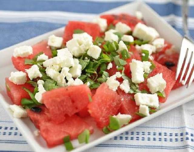 Арбузный салат с фетой, мятой и базиликом