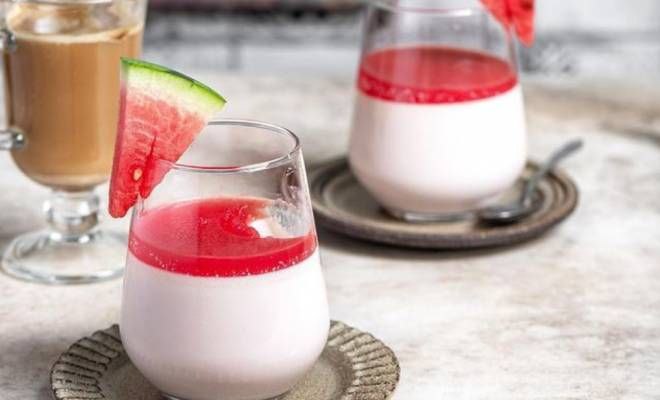 Панна-котта — нежный сливочный десерт, вкус которого можно сделать оригинальным с помощью арбузного сока. Арбузная панна-котта будет выглядеть ярко и аппетитно. Арбузный сок добавляется в сливочное желе и используется для приготовления арбузного желейного слоя.