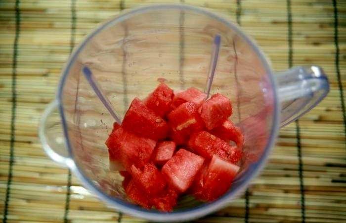 Арбузную мякоть измельчите блендером в пюре.