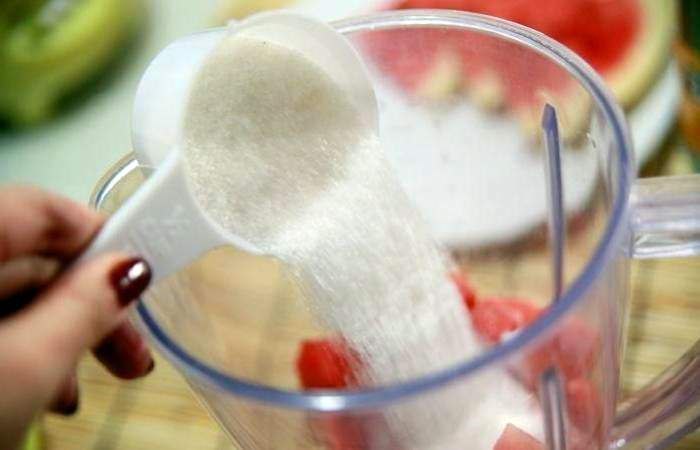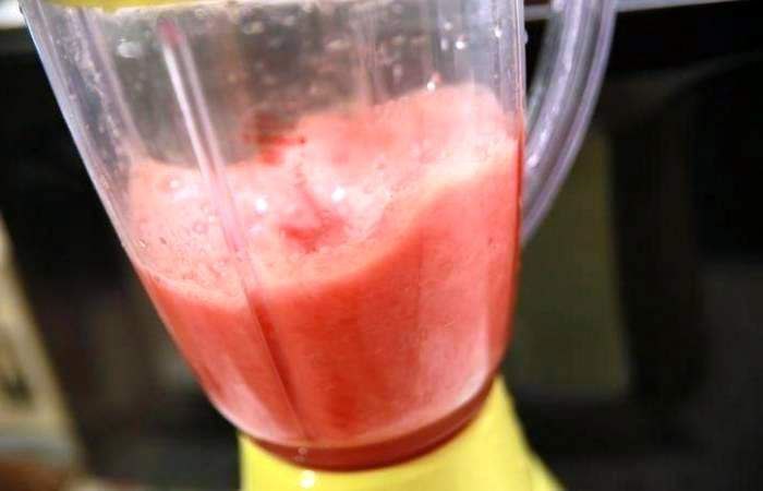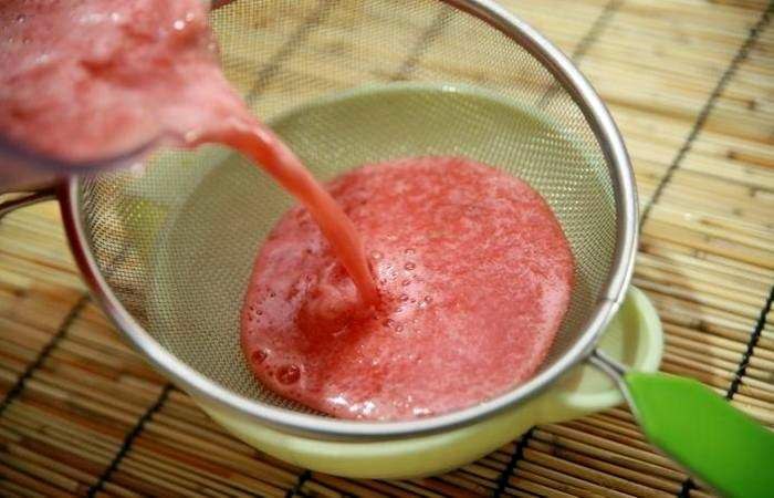 Процедите смесь через марлю или мелкое сито, убирая неизмельченные кусочки арбуза.