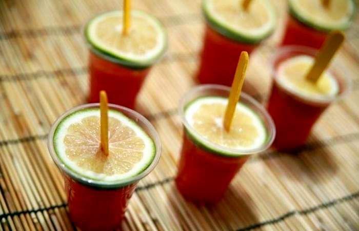 Мякоть арбуза без семечек и кожуры поместите в блендер. Добавьте сок лайма, сахар и текилу. Взбейте смесь и процедите через сито. Разлейте по формочкам.
