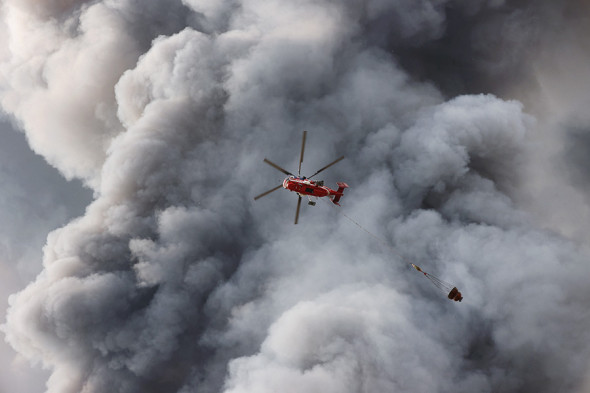 Информация о пожаре поступила в МЧС между 12:00 и 13:00. В тушении задействовали вертолет.