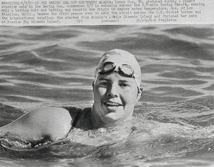 7 августа 1987 года, американка Линн Кокс стала первым в истории человеком, добравшимся вплавь из США в Россию. Она провела в 6-градусной воде 2 часа 6 минут, и преодолела 4160 метров Берингова пролива от американского острова Малый Диомид в штате Аляска до российского острова Большой Диомид.