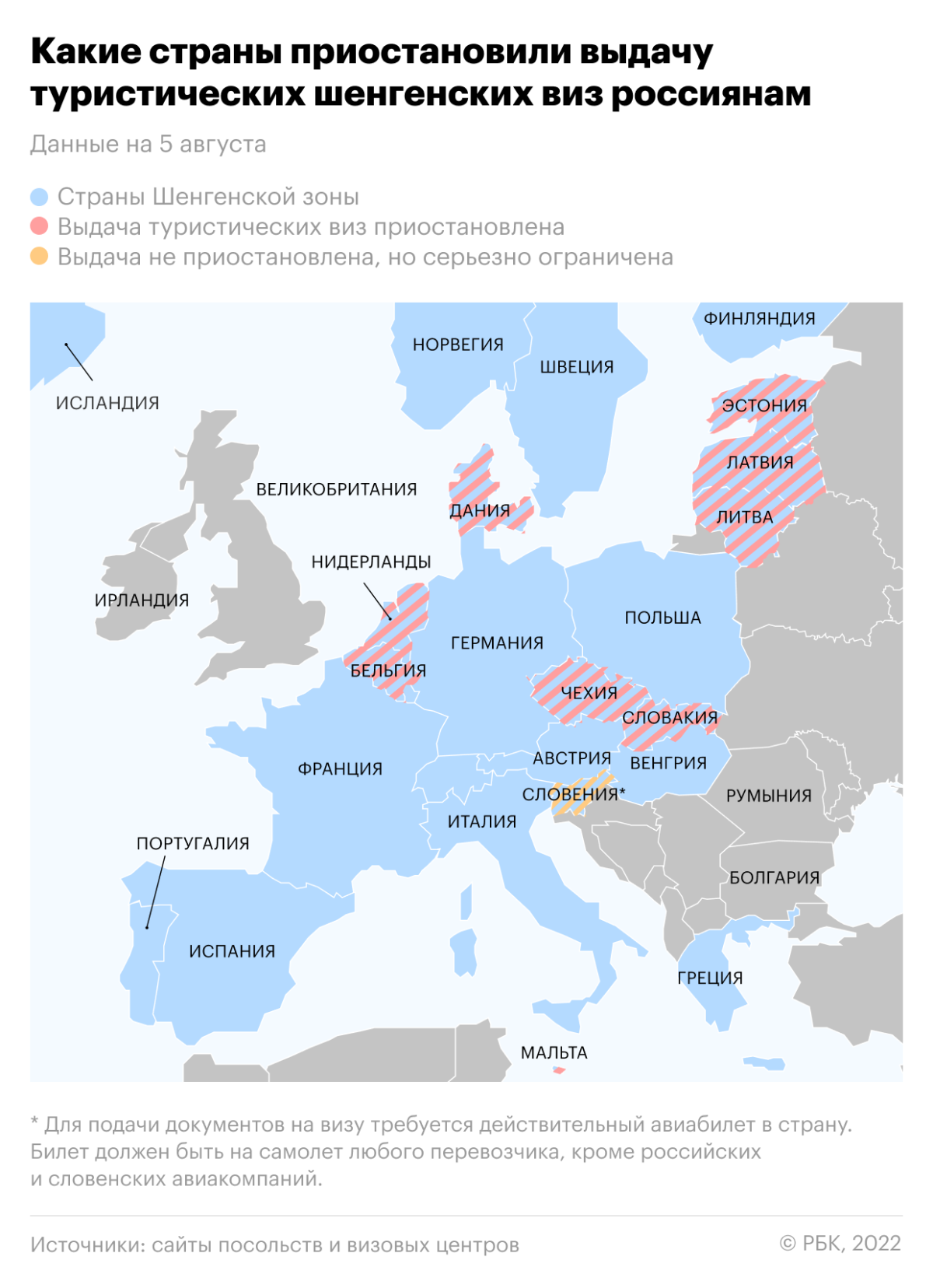 Выдачу туристических виз для россиян уже приостановили Нидерланды, Бельгия, Дания, Чехия, Словакия, Литва, Латвия и Эстония.