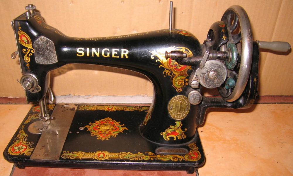 Машина Зингера, патент на которую он получил в США, имела прямую иглу с ушком, скользящий челнок-лодочку, прижимную лапку для фиксирования ткани и зубчатое колесо двигателя ткани, врезанное в стол.