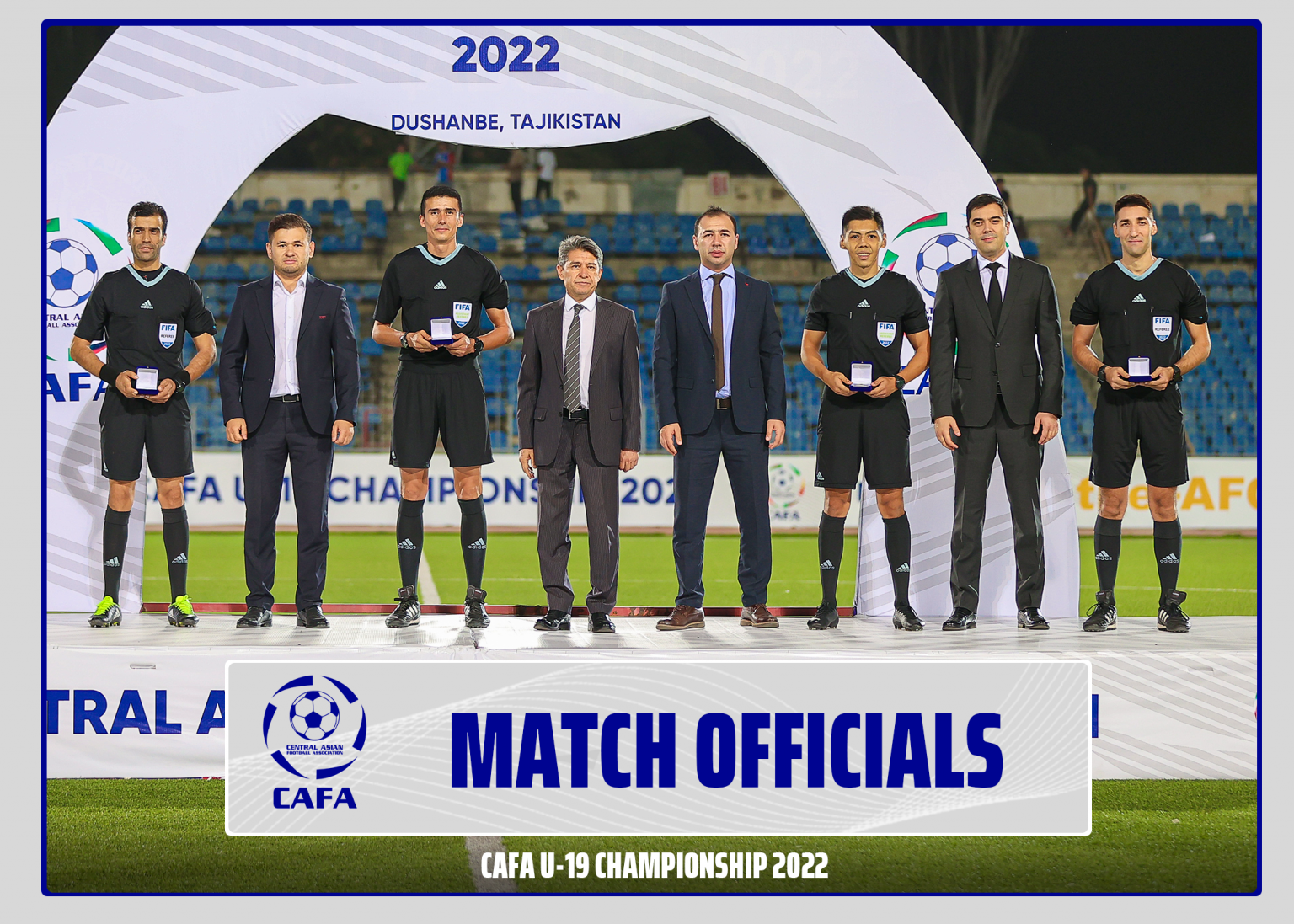 На церемонии закрытия, награждения победителей и призеров чемпионата CAFA-2022 среди молодежных сборных до 19 лет приняли участие вице-президенты Федерации футбола Таджикистана Дилшод Джуразода, Алишер Урунов, генеральный секретарь ФФТ Фуркат Ахмеджанов и генеральный секретарь Центрально-Азиатской футбольной Ассоциации Улугбек Каримов.