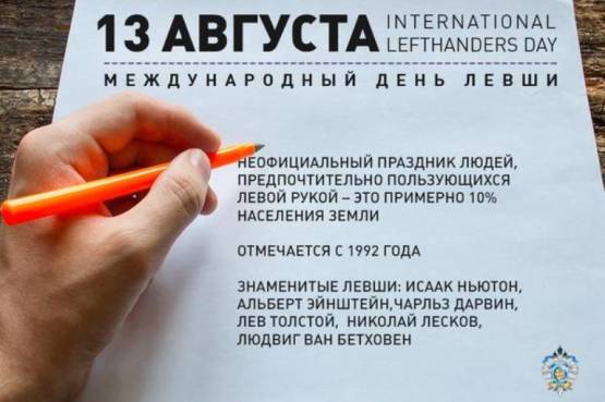 Сегодня Всемирный день левшей. Впервые его отметили 13 августа 1992 года по инициативе британского Клуба левшей, созданного в 1990 году.