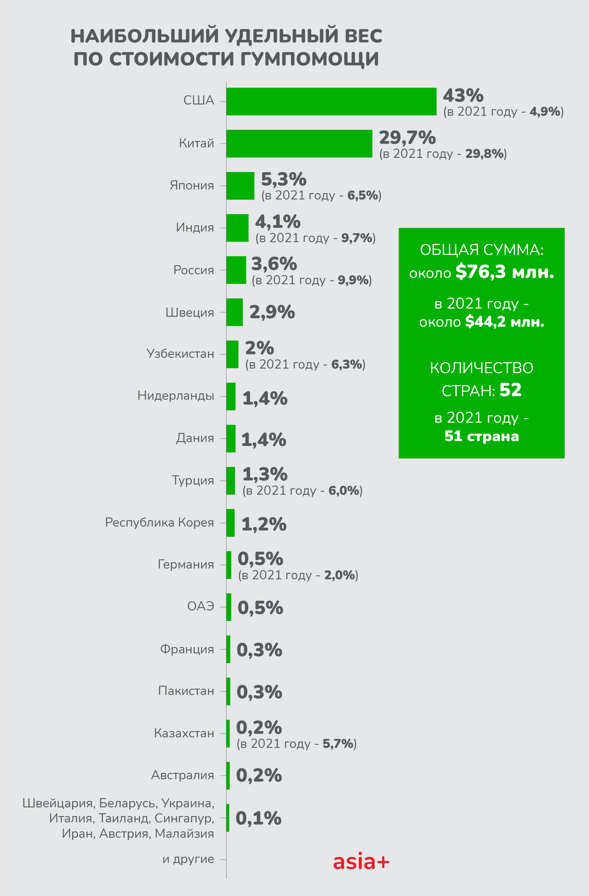 «Дата»НовостьЭкономика Какую помощь получил Таджикистан за 6 месяцев 2022 года? 11202 Asia-Plus 19.08.2022 TelegramFacebookWhatsAppCopy URL В тройку стран, которые оказали нашей республике наибольшую помощь вошли Соединенные Штаты Америки, Китай и Япония. Читайте нас в Telegram, Facebook, Instagram, Яндекс.Дзен, OK и ВК. Материал доступен на этих языках: Рус Предыдущая статьяДо 21 августа в Таджикистане высока вероятность схода ледниковых селейСледующая статьяТалибы приняли декларацию, в которой требуют от соседей не предоставлять свою территорию для угроз им Cхожие материалы Кортес уехал из Душанбе и уже в Боливии: странная история испанского тренера ЦСКА Президент поручил правительству начать подготовку к зиме Малая АЭС в Узбекистане: сколько заработает Россия на строительстве атомной станции у соседей Свежие записи Ревень Максимовича, лук Розенбаха и шибитак: чем полезны весенние травы Таджикистана и как их есть? Борьба и победа Адолат. Как таджикская женщина сломала стереотипы и создала свою компанию? Опасные инфекции: чем можно заразиться при курении кальяна в Таджикистане? Салом алейкум, Таджикистан! Анонсы событий, день в истории, прогноз погоды на 29 марта 2026 года О чем говорит таджикская тюбетейка? Присоединяйтесь к нам в соцсетях! TelegramInstagramFacebookTiktokYoutube Реклама на asia + Последние новостиСвежее Ревень Максимовича, лук Розенбаха и шибитак: чем полезны весенние травы Таджикистана и как их есть? admin - Рассказываем подробно об их пользе и что можно из них приготовить. Борьба и победа Адолат. Как таджикская женщина сломала стереотипы и создала свою компанию? admin - Сотни тысяч сомони, красивый дом в центре Душанбе, роскошный... Опасные инфекции: чем можно заразиться при курении кальяна в Таджикистане? admin - Курение кальяна становится всё более популярным, однако мало кто осознаёт все риски, связанные с этим процессом. Салом алейкум, Таджикистан! Анонсы событий, день в истории, прогноз погоды на 29 марта 2026 года admin - ДЕНЬ В ИСТОРИИ ТАДЖИКИСТАНА – 29 МАРТА 1929 – Основан «Точикматлубот»... О чем говорит таджикская тюбетейка? amrita - Покажи мне свою тюбетейку, и я скажу, откуда ты... Кортес уехал из Душанбе и уже в Боливии: странная история испанского тренера ЦСКА admin - История испанского тренера Хуана Кортеса в таджикском футболе получилась... Президент поручил правительству начать подготовку к зиме admin - Правительство Таджикистана на своем заседании 28 марта под председательством... «Он выбрал не безопасность — он выбрал правду». К 30-летию со дня гибели журналиста Виктора Никулина admin - Он пришёл в журналистику в начале 90-х - время, когда каждое слово, и каждый репортаж могли иметь последствия. При каких условиях государство может отобрать у вас землю? admin - И при каких случаях при выселении вам должны предоставить другое жилье. Объясняем подробно. Малая АЭС в Узбекистане: сколько заработает Россия на строительстве атомной станции у соседей admin - Строительство атомной станции малой мощности в Узбекистане может обеспечить... Загрузить больше