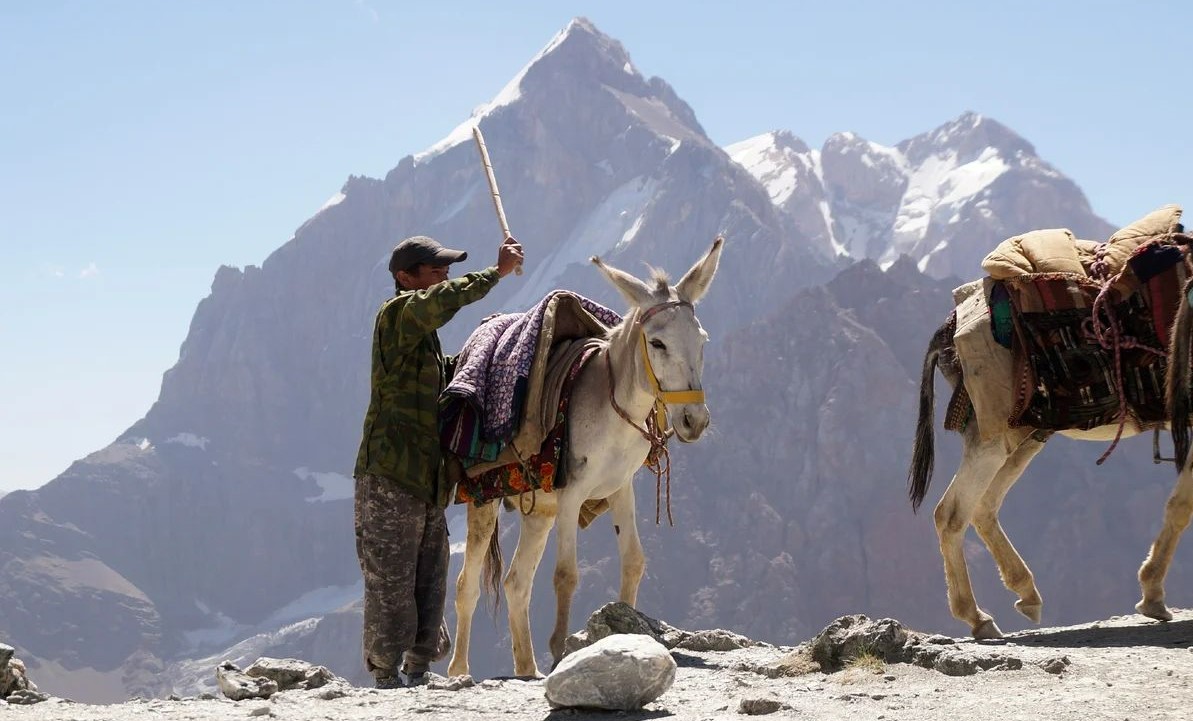 "Лагерь Вертикаль-Алаудин в Фанских горах, с туристами и альпинистами из стран России, Беларусии и Франции".