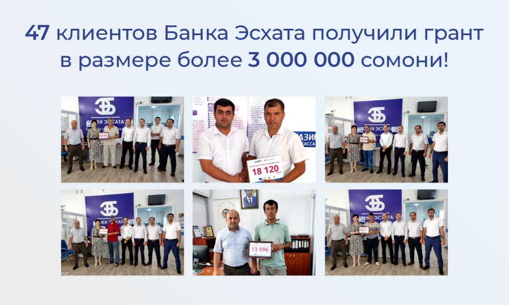 На этот раз клиенты филиалов Гиссар, Бохтар, Яван, Мастча, Турсунзаде, Истаравшан, Пенджикент и Операционного Управления города Худжанд получили гранты в размере 309 074,66 долларов США или 3 171106 сомони.