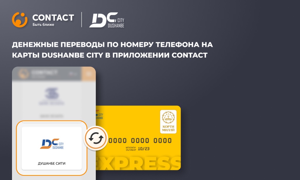 ЗАО «Душанбе Сити Банк» расширяет границы своих возможностей. Теперь на всех платформах платежной системы CONTACT (сайт и мобильное приложение) доступны переводы на карты Dushanbe City.