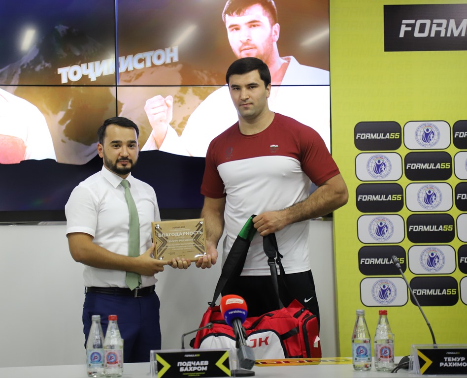 Первая национальная букмекерская компания «Formula 55» в рамках своего проекта «Точикистон ба пеш!» наградила в очередной раз спортсмена, серебряного призёра Чемпионата Азии в Казахстане, лучшего дзюдоиста номер 1 в мире в категории 100+ кг Темура Рахимова.