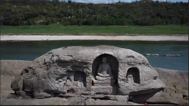 Из-за падения уровня воды в реке Янцзы на поверхности появились три буддийских статуи, которым, как полагают археологи, может быть около 600 лет.