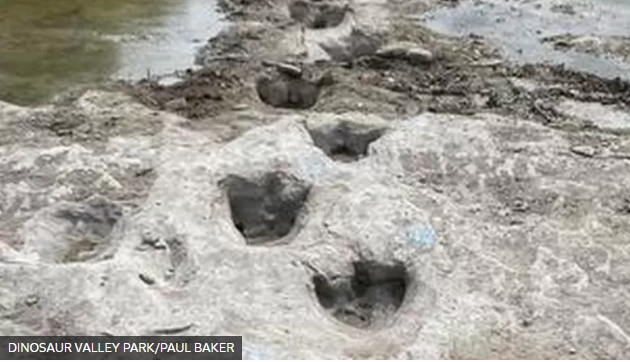 На дне обмелевшей реки в центральном Техасе обнаружились следы динозавра возрастом 113 млн лет.
