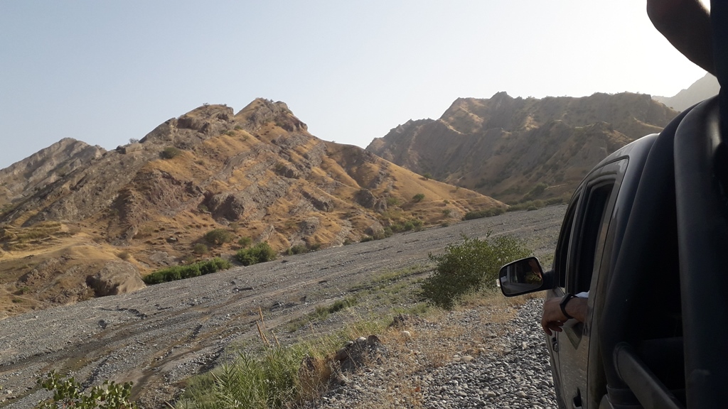 Администрация самого заповедника «Даштиджум», куда мы отправились, находится в джамоате Саричашма района Шамсиддина Шохина. Прямой дороги к райцентру нет — между ними горы. В Саричашму можно попасть из Восейского района, не доезжая до Куляба. Дорога длиной примерно в 40 км ведет к небольшому перевалу через высокие холмы – выжженные на солнце и очень пыльные в летний период.