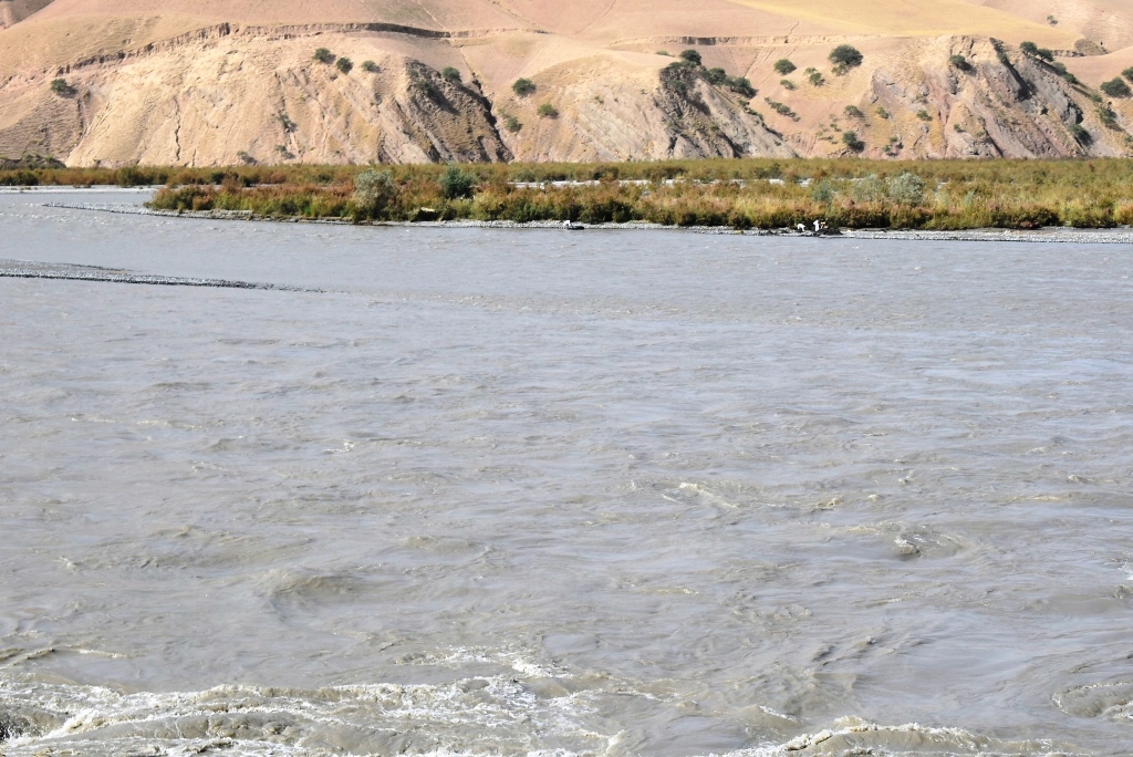 На реке в одном месте несколько людей занимаются промыванием золота. Граница проходит по центру реки. За действиями афганцев строго следят наши пограничники, если кто-нибудь приближается к середине реки, предупреждают их о возможном нарушении, и те возвращаются обратно. По словам сотрудников заповедника, инцидентов с пересечением границы с целью поохотиться на редких животных, с афганской стороны не было.