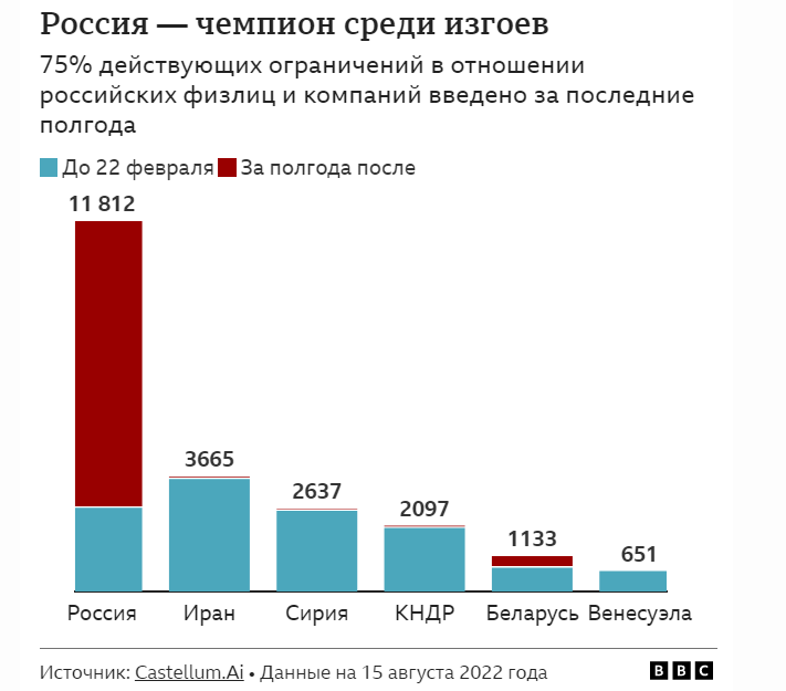 Во-вторых, сроки. Санкции финансовые были введены моментально, а вот торговые растянулись на месяцы: европейское эмбарго на российский уголь вступило в силу только сейчас, в августе, а нефтяное и вовсе отложено до зимы, к тому же оно не полное, поскольку не распространяется на трубопроводные поставки.