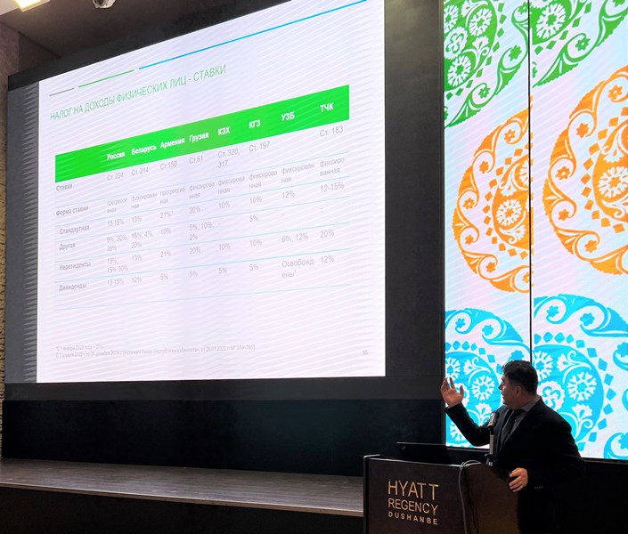 В продолжении семинара по освещению нового налогового кодекса Республики Таджикистан, который прошел в феврале текущего года, в этот раз гостям были представлены результаты проведенного исследования налоговых систем стран ближнего зарубежья с сравнительным анализом, показывающим эффективность налоговых ставок, налогового бремя и объема налогообложения.