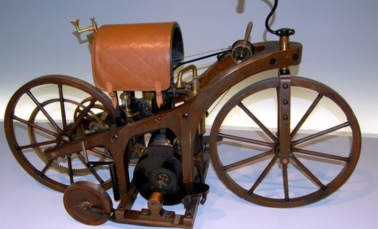 К 1885 году двигатель Даймлера прошёл стадию исследований и был готов к использованию. Оставалось лишь найти подходящую машину для его установки. Самым простым вариантом оказалось использовать для этого велосипед, который 29 августа 1885 года был запатентован как «керосиновая повозка для верховой езды Даймлера» (нем. Daimler Petroleum Reitwagen). Однако сам изобретатель так и не собрался воплотить свою идею в жизнь, но это сделал его сын — Адольф Даймлер.