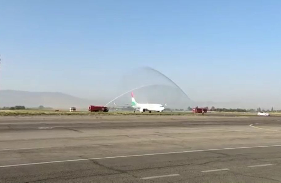 По красивой традиции Боинг встретили водной аркой в аэропорту Душанбе.