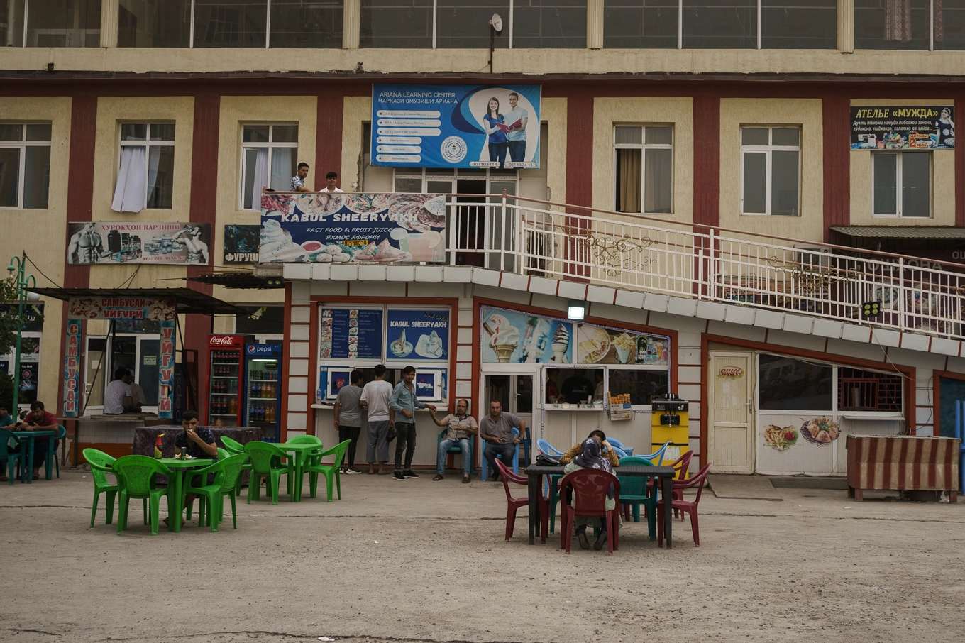 Он показывает места встреч: берег реки; футбольное поле, облюбованное несколькими командами, состоящими из афганских переселенцев; парк с портретом президента Таджикистана Эмомали Рахмона, который по вечерам заполняется афганцами; и несколько принадлежащих афганцам кафе, где в основном подают фисташковое, шафрановое и кардамоновое мороженое.