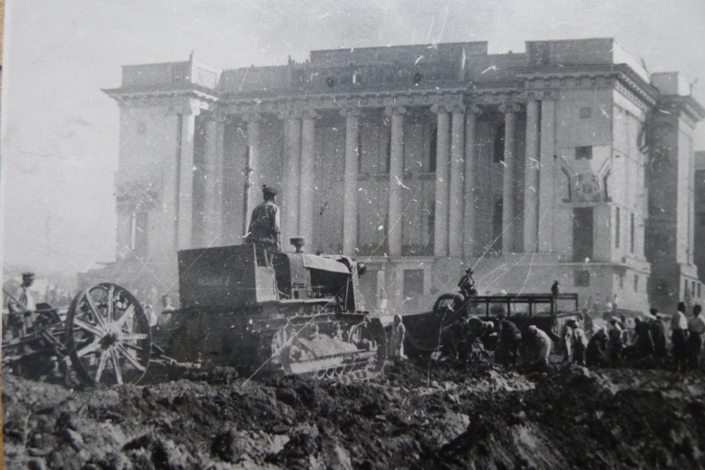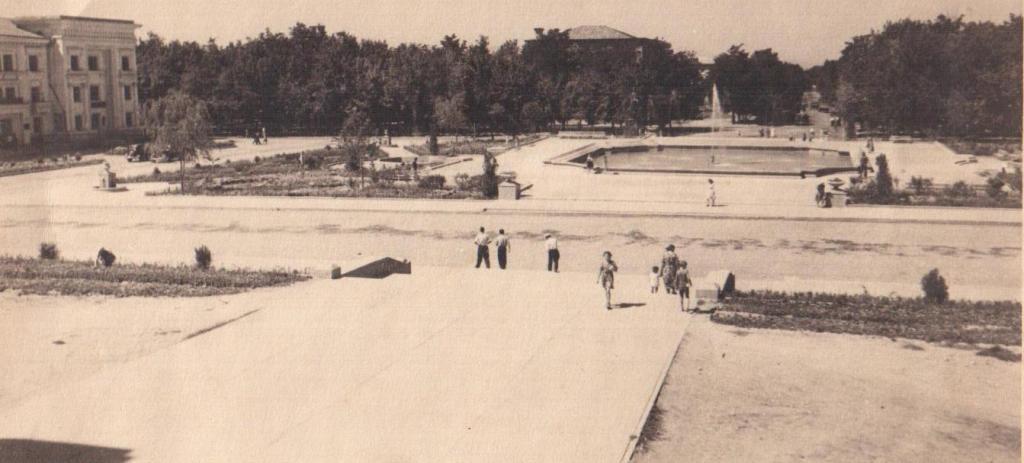 Однако если вернуться на 75 лет назад, то площадь выглядела иначе. Бурьяны и косогоры, заросли верблюжьей колючки, вот что было на огромном пустыре перед зданием театра.