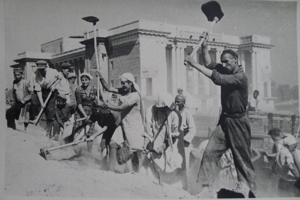 В этот день со всех концов города сюда пришли первые строители: студенты, рабочие, интеллигенция, служащие госучреждений, военнослужащие.