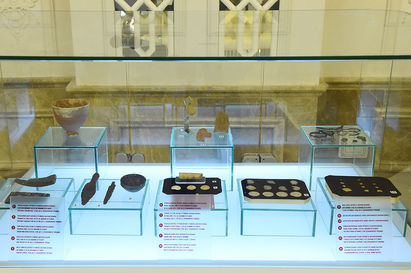 На втором этаже — исторический музей города Душанбе, где собраны в основном находки, обнаруженные при проведении археологических раскопок на территории столицы. В частности, в музее представлены каменные топоры, извлеченные из махалли Лучоб и реки Душанбинки, относящиеся к каменному веку.