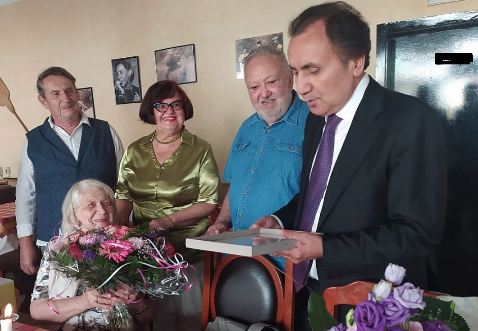 Поздравить Эрну Гейзер пришел Посол Таджикистана в Германии Имомуддин Сатторов. Он вручил ей почетную грамоту Посольства РТ в ФРГ и почетную грамоту Министерства культуры РТ.