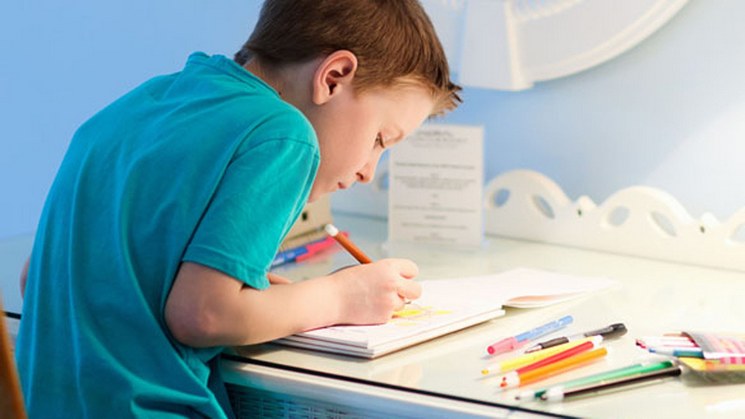 Обеспечьте ребенку комфортное рабочее место! Желательно, чтобы ребенок мог регулировать высоту стула по соотношению к письменной доске. Либо, если функционал стула этого не позволяет, высота стула не должна вынуждать его склоняться над письменной доской слишком низко, или, наоборот, тянуться выше.
