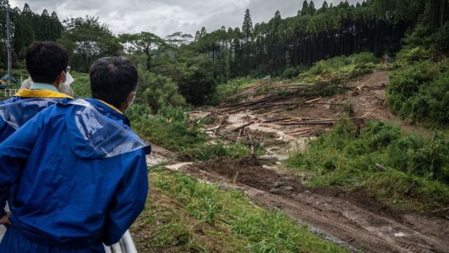 Супертайфун обрушился на Кюсю со стороны города Кагосима на южной оконечности острова. В результате река Кюсю вышла из берегов. На кадрах с местных видеокамер видно, как ветер срывает крыши с домов и опрокидывает рекламные билборды.