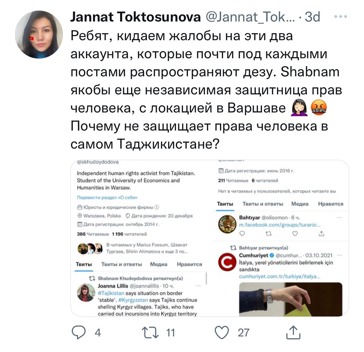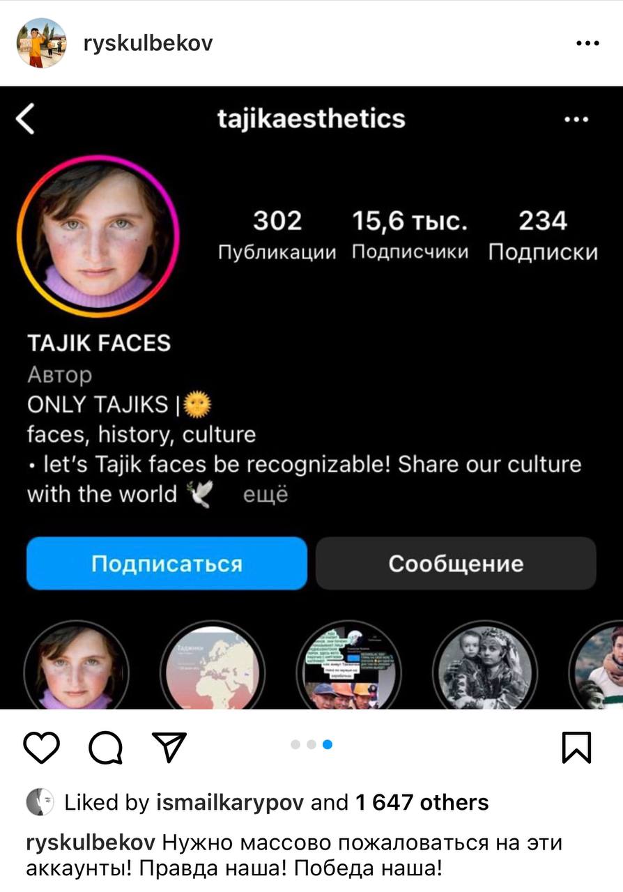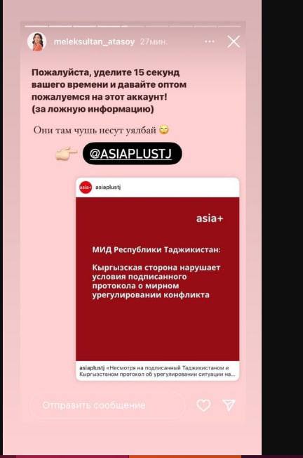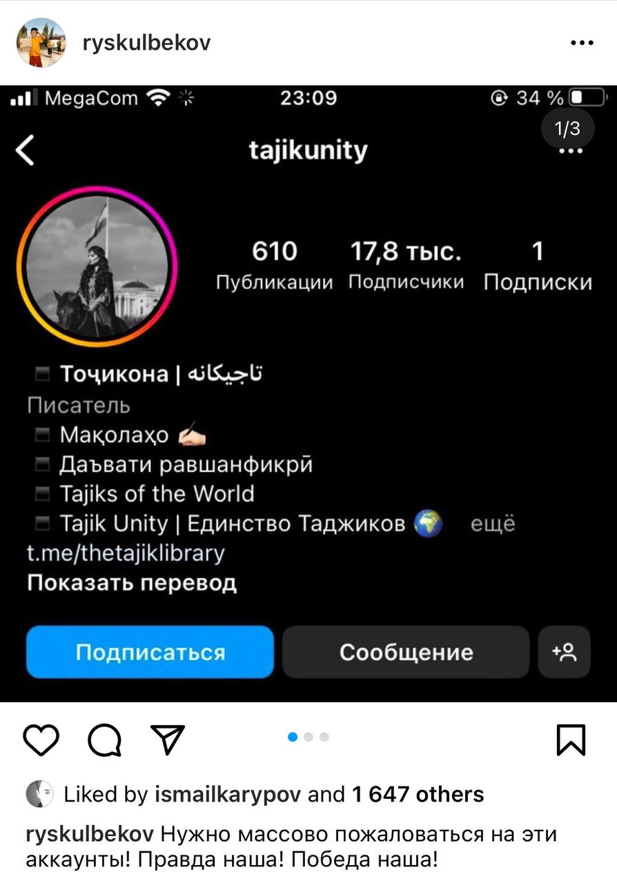 Впрочем, в социальных сетях атакам соседей подвергались не только СМИ. Блогеры Кыргызстана призывают своих соотечественников жаловаться на аккаунты таджикских инфлюенсеров и блогеров в Facebook, Instagram и Twitter.