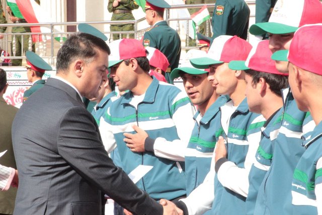 Напутствовать призывников пришли заместители председателя города Душанбе Умед Гуреззода и Дилбар Одилзода, представители Минобороны и Комитета по делам молодёжи и спорта при правительстве.