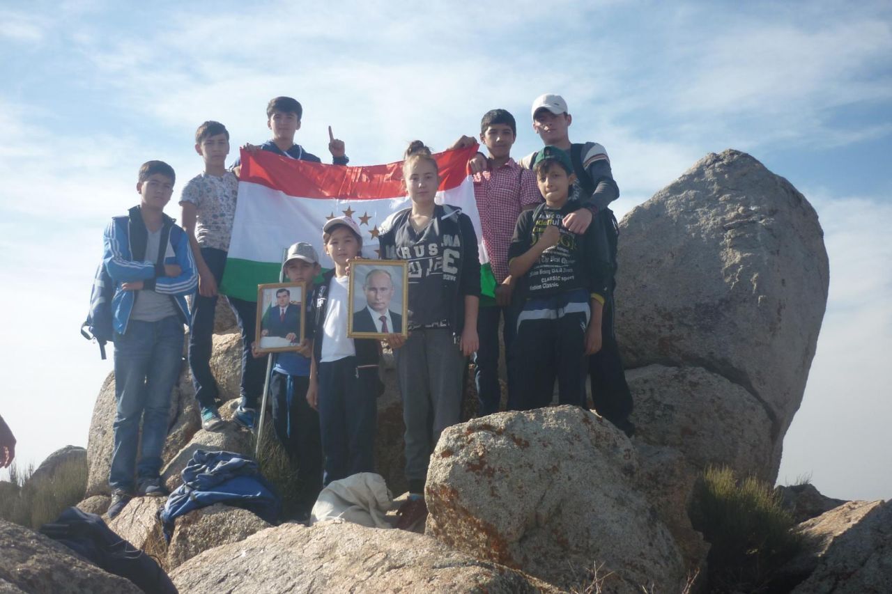 4 октября по инициативе Молодежной федерации боевых искусств и Академии карате и боевых искусств, юные спортсмены водрузили флаги Таджикистана и России в верхней точке гор Могол Тау в честь 70-летия глав государств.