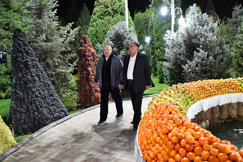 Вечером 11 октября президент Таджикистана Эмомали Рахмон в честь официального визита президента Беларуси Александра Лукашенко в резиденции правительства устроил неформальный прием.