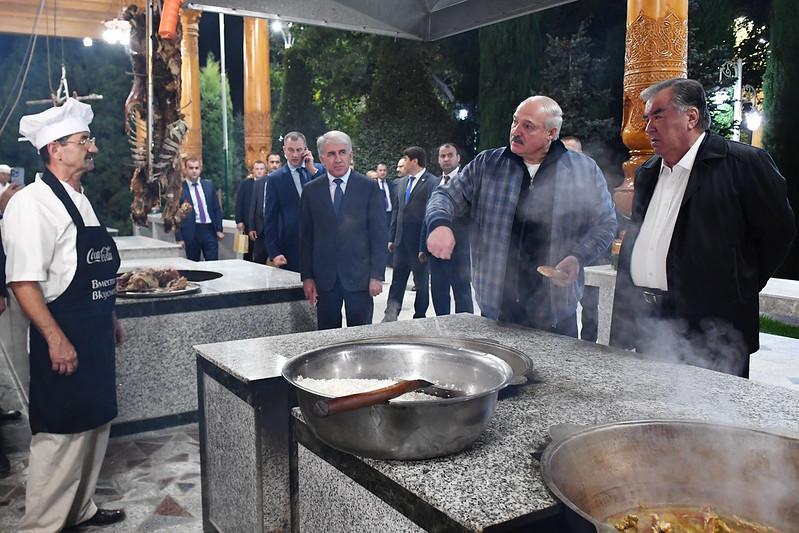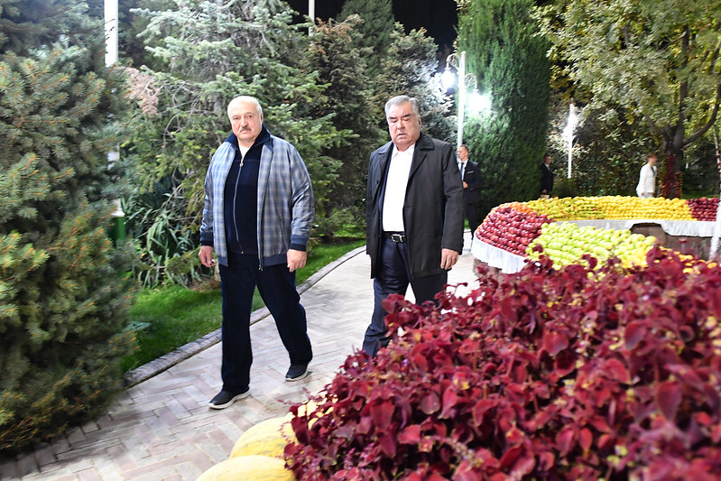 Вечером 11 октября президент Таджикистана Эмомали Рахмон в честь официального визита президента Беларуси Александра Лукашенко в резиденции правительства устроил неформальный прием.