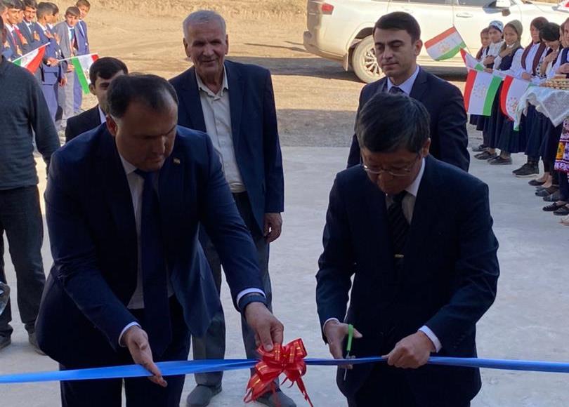 Чрезвычайный и Полномочный Посол Японии в Республике Таджикистан Тоcихиро Аики и Мухтади Маджики, председатель района Ховалинг, 12 октября приняли участие в церемонии завершения «Проекта строительства новой школы в селе Бугдояк джамоата Лохути района Ховалинг».