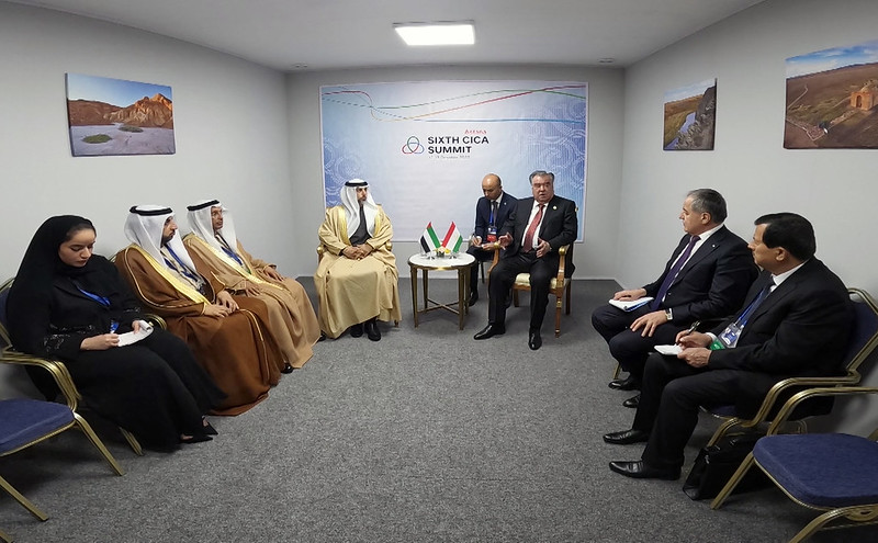 Президент Таджикистана Эмомали Рахмон в рамках саммита Совещания по взаимодействию и мерам доверия в Азии в Астане провел встречу с министром энергетики и инфраструктуры Объединенных Арабских Эмиратов Сухайлом Мазруи, передает пресс-служба главы государства.