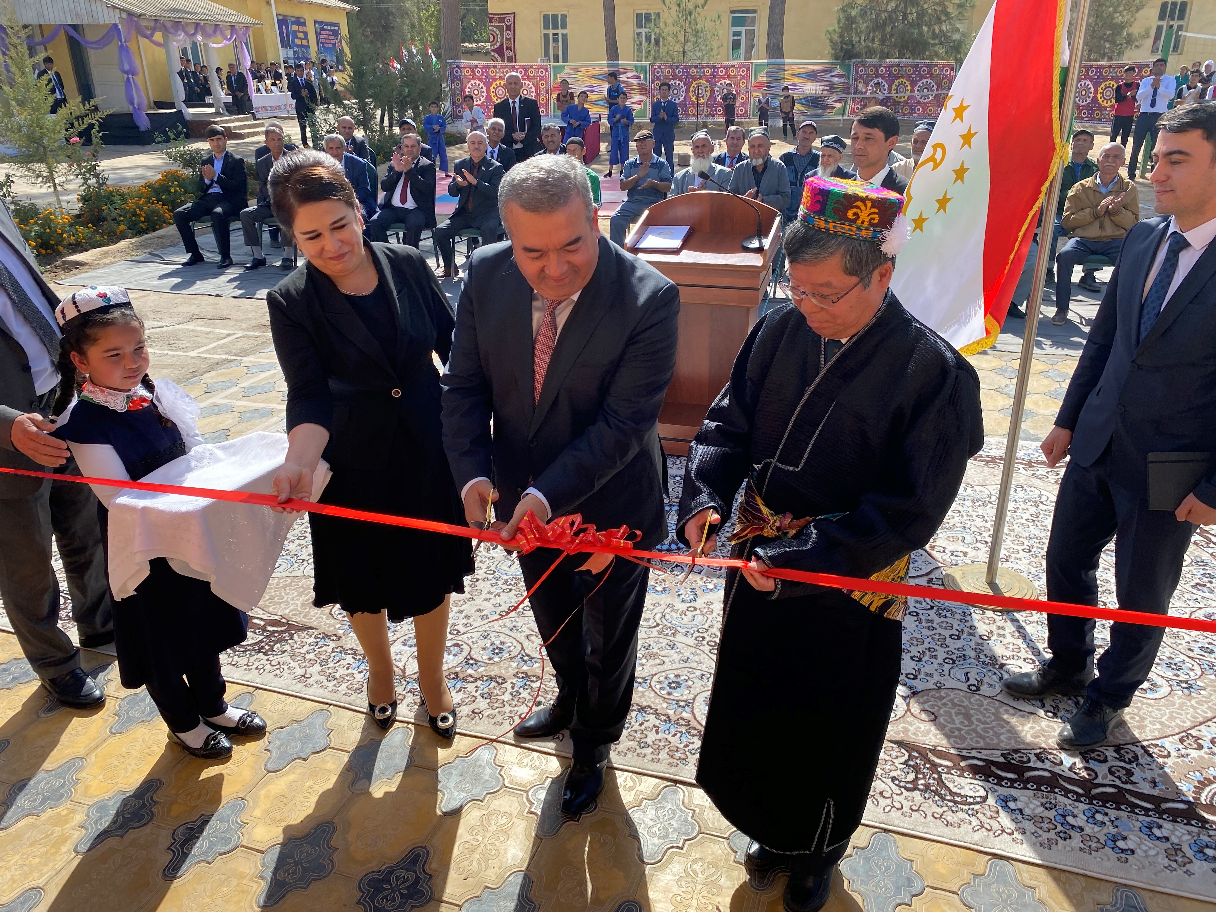 Чрезвычайный и Полномочный Посол Японии в Республике Таджикистан Тоcихиро Аики совместно с Курбоном Хакимзода, председателем Хатлонской области Газалшохом Гуломом Сафарзода, начальником управления образования Хатлонской области с Бунафшой Файзиддинзода, председателем города Левакант, приняли участие в церемонии завершения «Проекта строительства школы №6 в селе Бохтуробод джамоата Гулистон города Левакант».