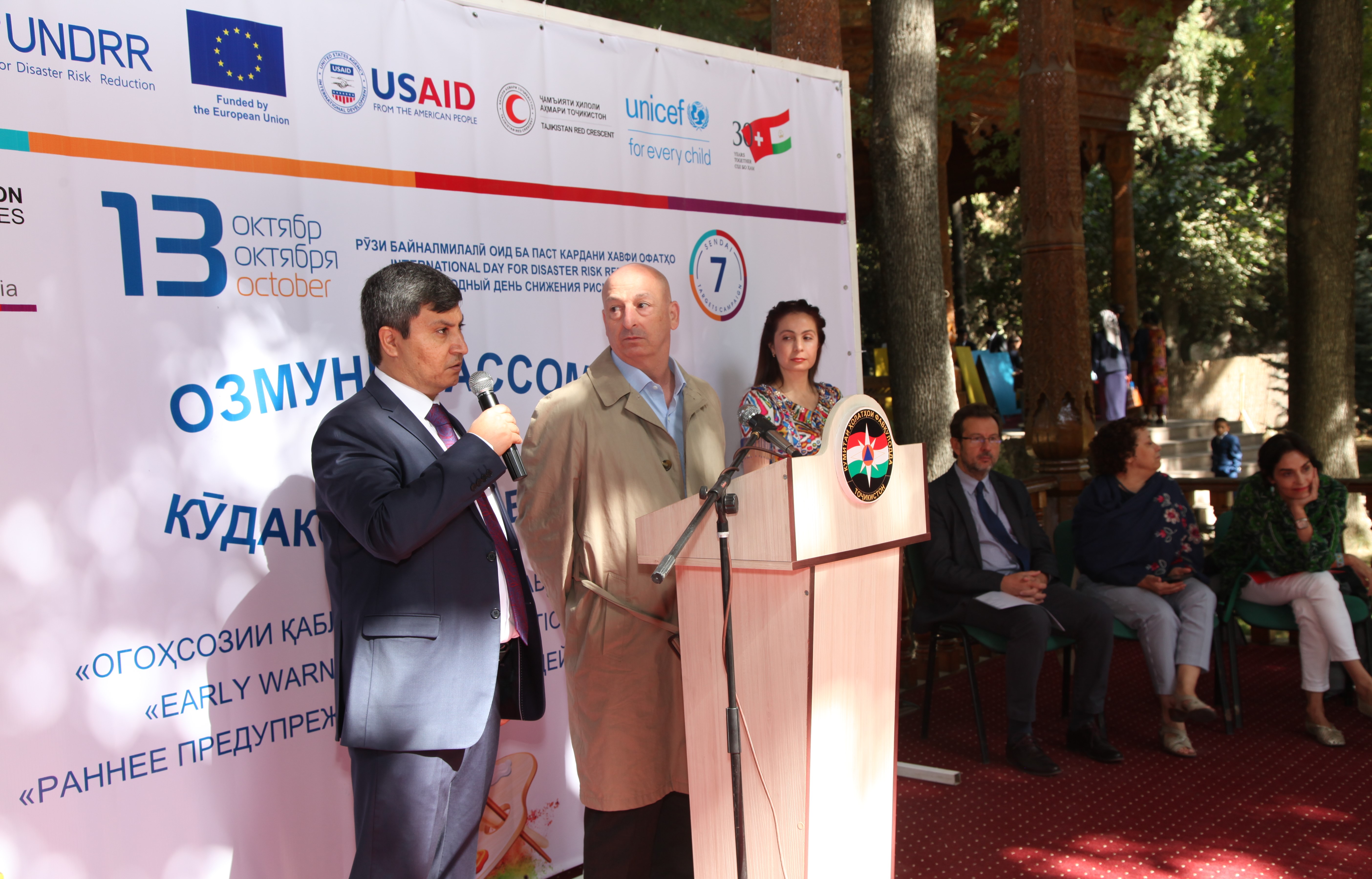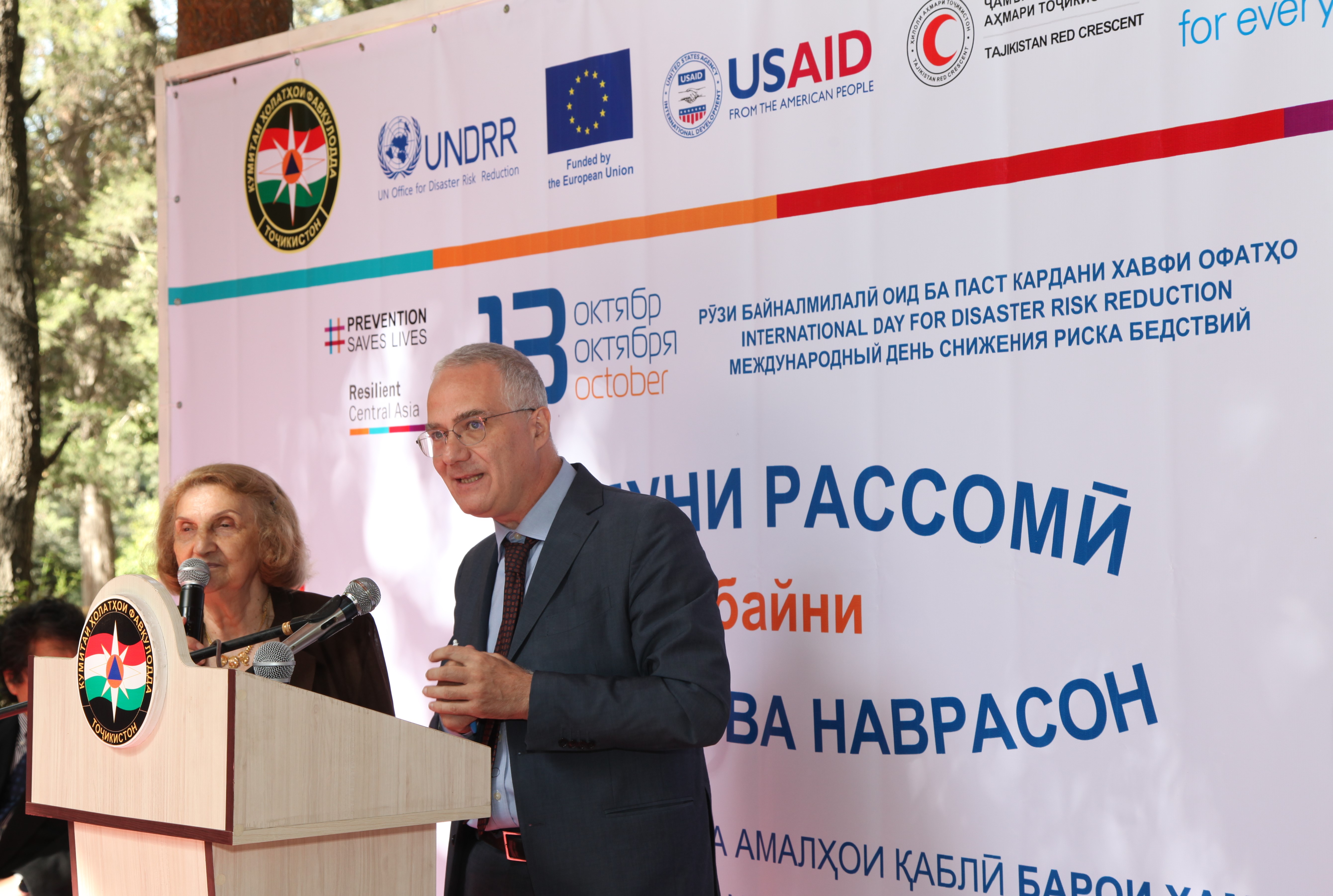 “Сегодня передается еще одно важное послание: "Раннее предупреждение и скорейшее действие для всех”. Это означает: “принимайте меры на раннем этапе”, потому что ранние действия могут спасти жизни. Основной целью уменьшения опасности бедствий является их предотвращение. Но когда это невозможно, тогда важно, чтобы население и секторы, находящиеся в зоне риска, могли получить предупреждение, понять его и, самое главное, действовать в соответствии с ним”, – сказал г-н Джузеппе Аристей, программный менеджер Представительства ЕС в Таджикистане.