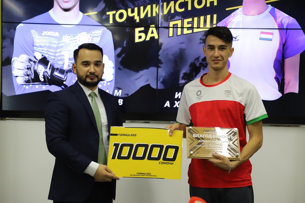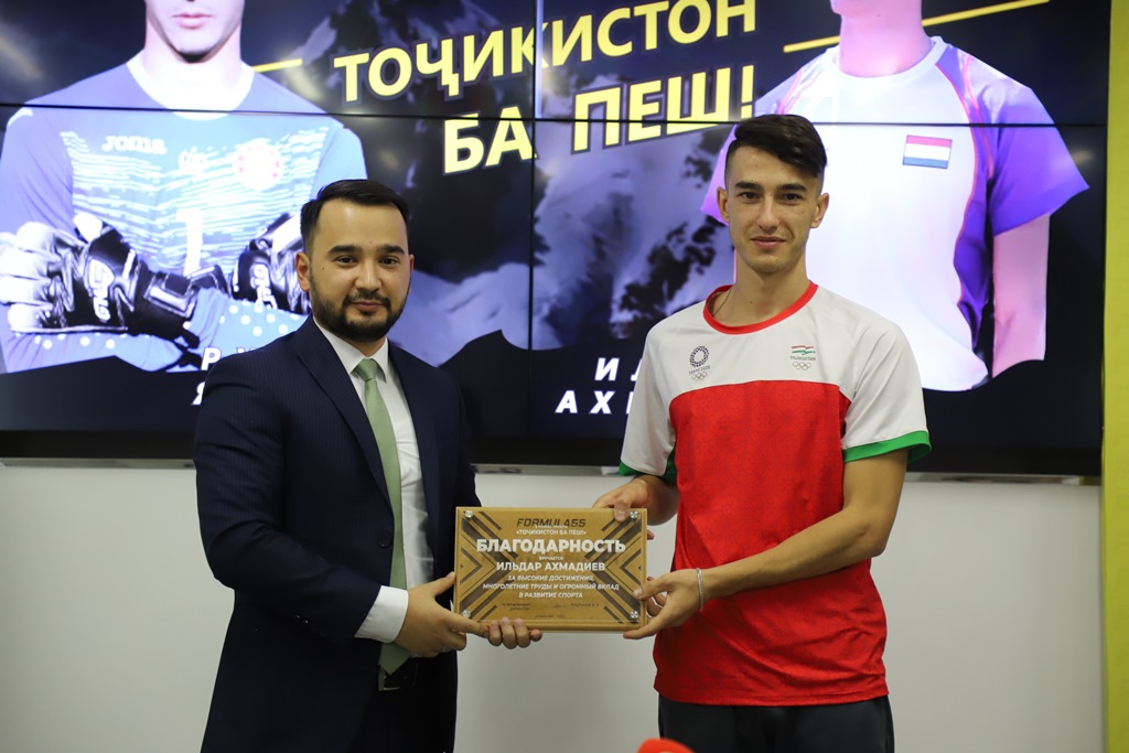 Первая национальная букмекерская компания «Formula 55» в рамках своего проекта «Точикистон ба пеш!» наградила очередного спортсмена, многократного чемпиона по легкой атлетике Ильдара Ахмадиева.