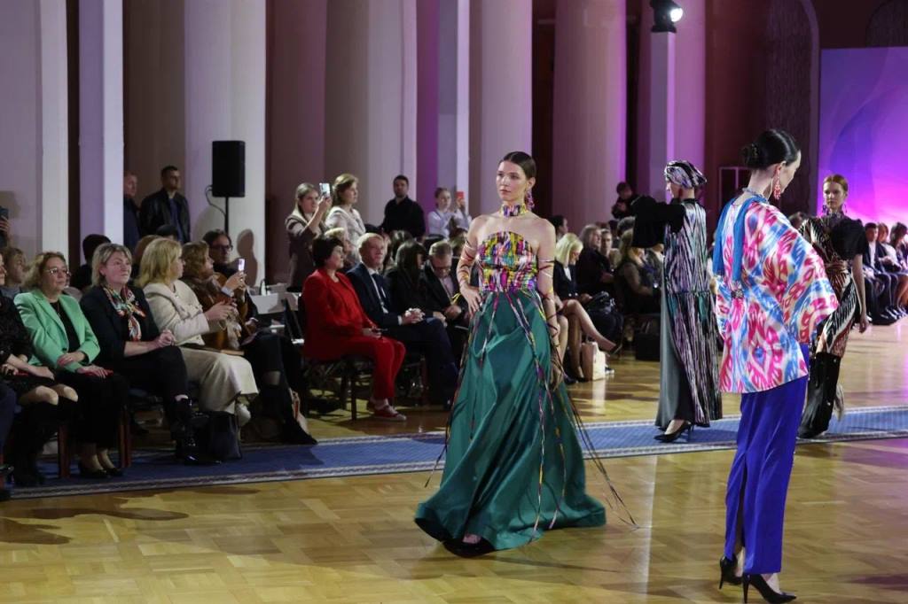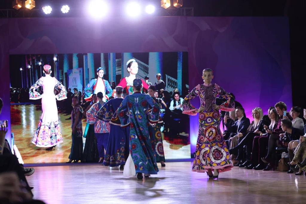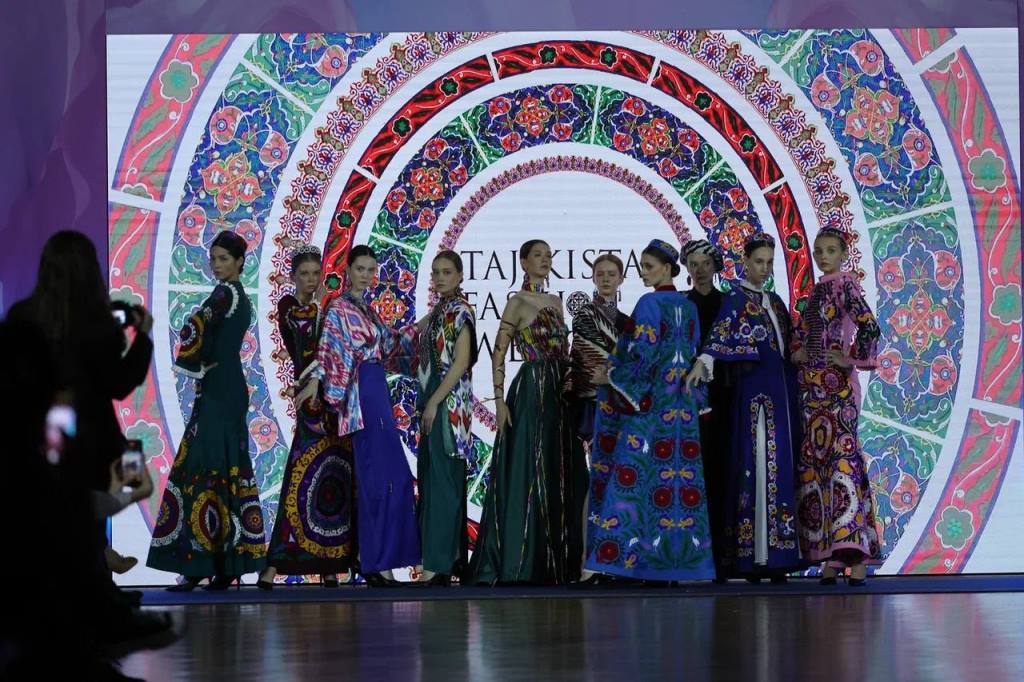 Tajikistan Fashion Week, представляющий Таджикистан, показал гостям и другим участникам международного форума коллаборацию таджикских дизайнеров, в числе которых Умед Кучкалиев, Гугуш Ашурова и Садбарг Мараими.