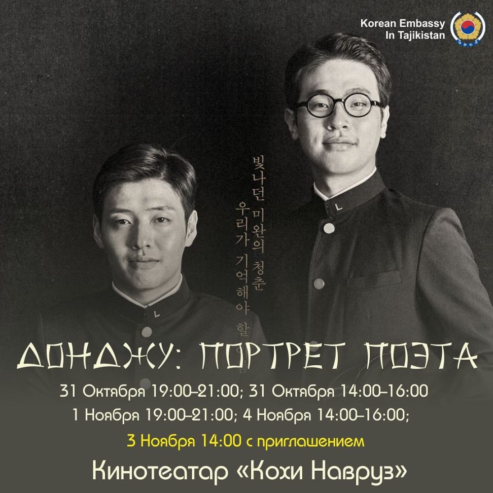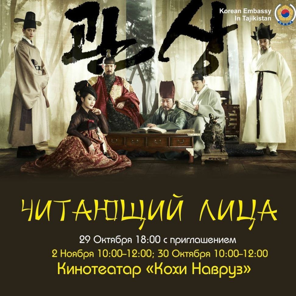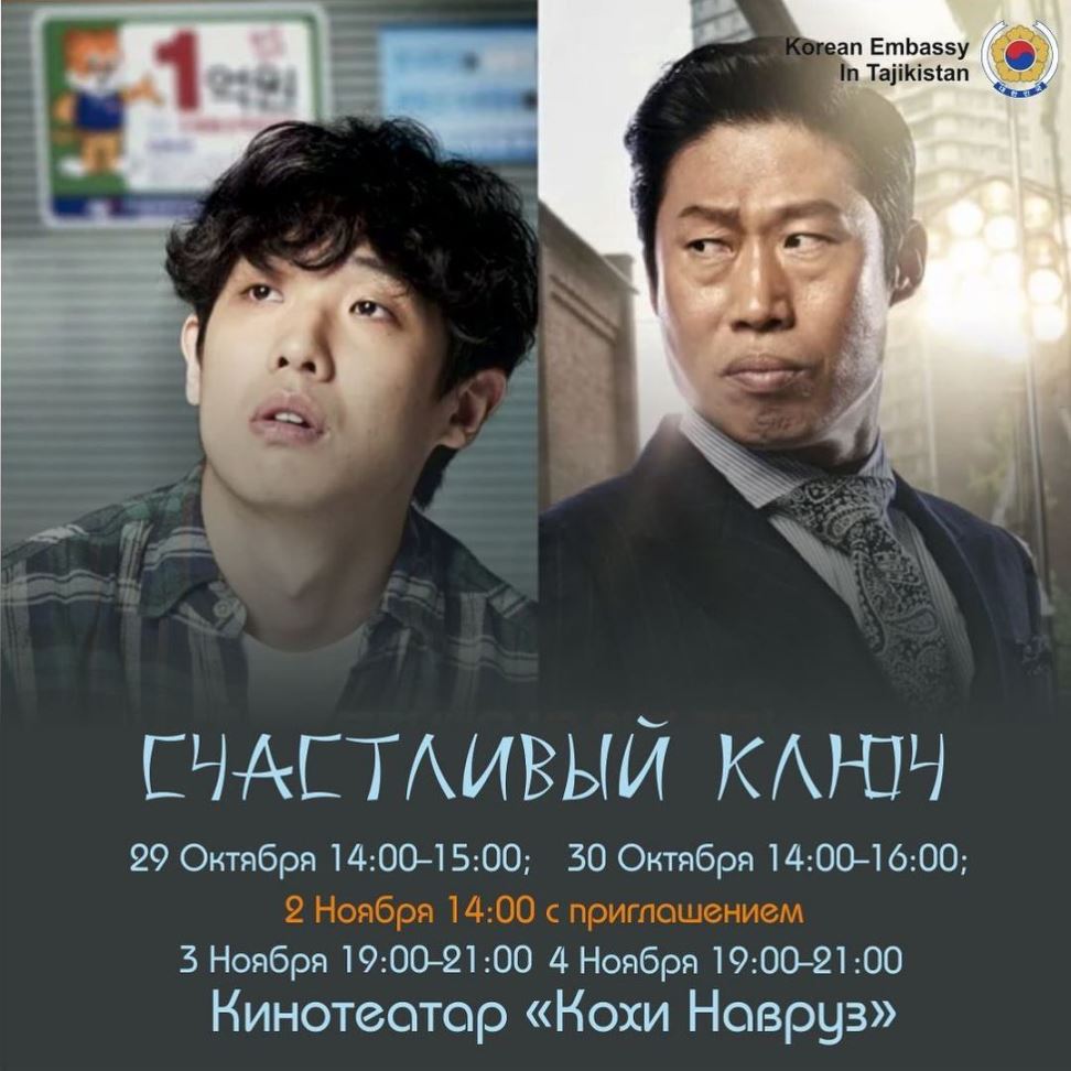 Фестиваль будет проходить в кинотеатре «Кохи Навруз» с 29 октября до 4 ноября. Организатором выступает Посольство Республики Корея. Вход на кинопоказы свободный, нужно лишь забронировать место.