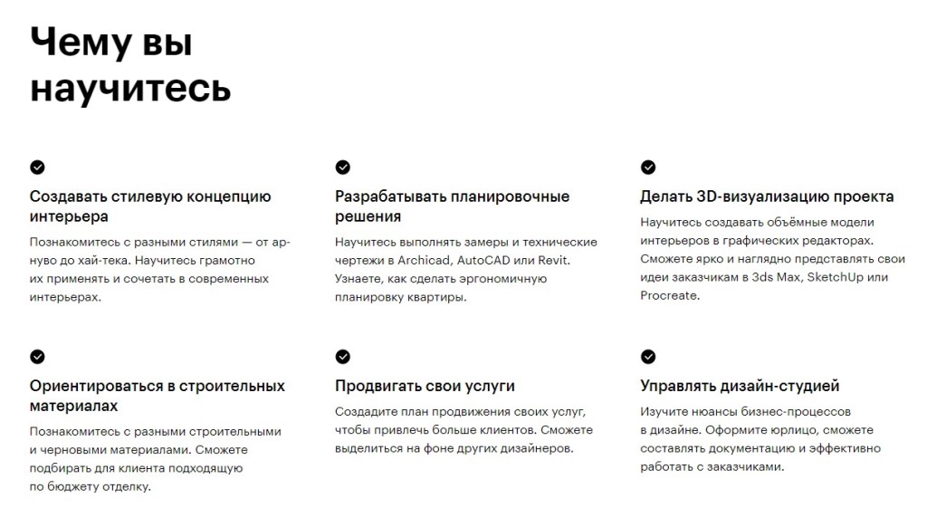 По дизайну интерьера Skillbox предоставляет 6 программ для работы на выбор.