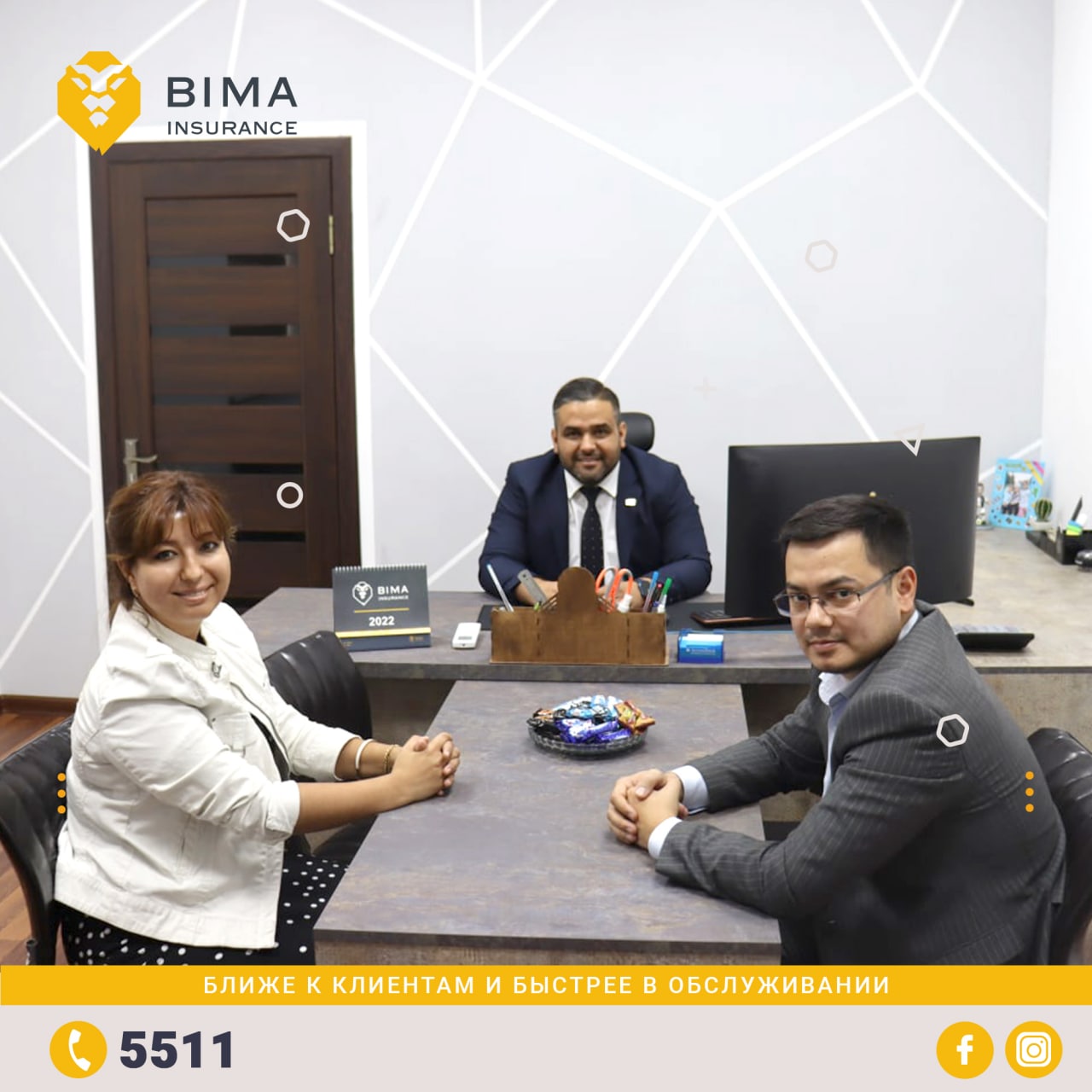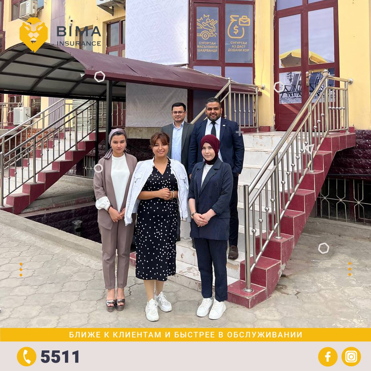 Клиенты и партнеры БИМА в Хатлонской области по всем вопросам страхования могут обращаться по адресу: Хатлонская область, г. Бохтар, ул. Дустии Халкхо, 5/14 (ориентир стадион "Юность") либо по короткому номеру 5511.