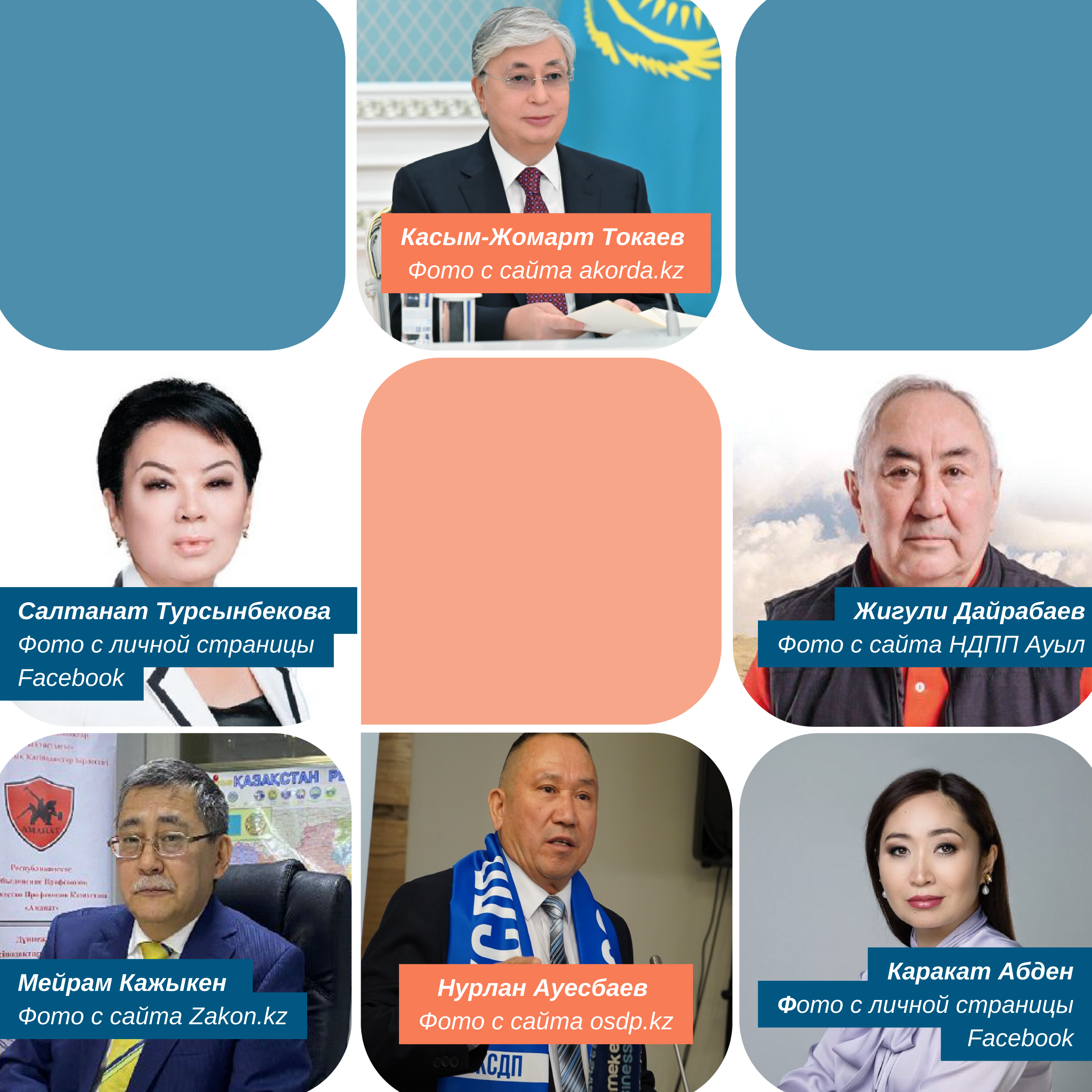 Главной фигурой внеочередных выборов является действующий президент Касым-Жомарт Токаев. Его кандидатуру выдвинули сразу несколько политических партий – Amanat (правящая), Народная партия Казахстана, «Ак жол» и несколько общественных объединений.
